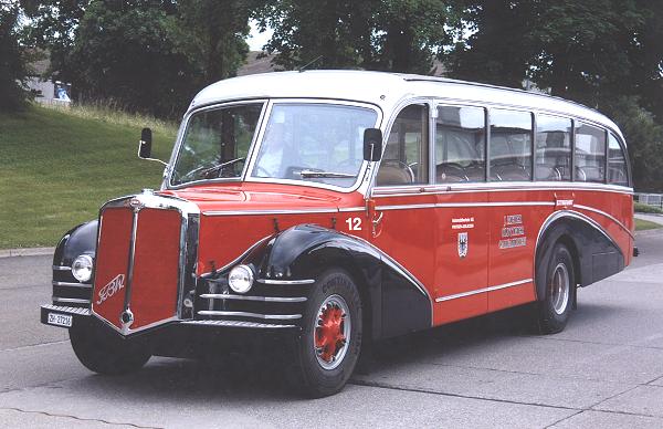 | Der Schnauzer-Bus war als Luxus-Reisecar im Einsatz bei den Verkehrsbetrieben Frutigen - Adelboden ( Berner Oberland). Vornehmlich wurde er für Pässefahrten und mehrtägige Ausflüge eingesetzt. Das Fahrzeug hat ein Schiebedach und ist mit einer Velours-Stoffbekleidung ( Dach) und mit echten Ledersitzen ausgestattet. Das Fahrzeug wurde von Grund auf restauriert und in den ursprünglichen Farben neu lackiert. |