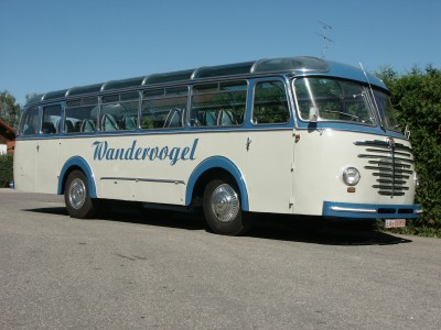 Das Büssing Chassis 4000 T wurde von der Firma E. Auwärter mit einer modernen Karosserie aufgebaut. Hier ist die moderne Panorama Frontscheibe bemerkens wert.