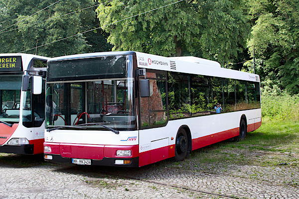 Alle MAN-Stadtbusse waren zunächst auf verschiedene Betriebshöfe verteilt, Wagen 2434 war zusammen mit 2439 in Harburg stationiert. Von Ende 2007 bis Juni 2008 wurden alle MAN-Stadt- und Gelenkbusse auf dem Betriebshof Wendemuthstraße zusammengezogen, um die Ersatzteilversorgung zu zentralisieren. Die sechzehn MAN-24er wurden planmäßig 2016 nach 12 Jahren Einsatzzeit ausgemustert, zwei Busse aus technischen Gründen schon 2015 und die letzten 5 schafften es noch bis zum Mai 2017. Im Mai 2017 konnte ein HOV-Mitglied den Wagen 2434 von der HHA erfolgreich ersteigern und ihn 2020 dem HOV-Museumsbestand zur Verfügung stellen. Er war zur Zeit der Ausmusterung der besterhaltene seiner Serie und der zuletzt eingesetzte seines Typs. |