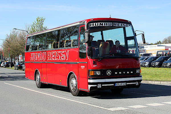 | | Kässbohrer Setra S 211 HD | | Baujahr: | 1985 | | | Hersteller: | Kässbohrer | Typ: | Setra S 211 HD | | Aufbau: | ..wie Hersteller | Motor: | Diesel | | Leistung/Hubr.: | 280 PS / 14517 ccm | Gewicht: | 11300 kg | | Länge: | 9870 mm | Breite: | 2500 mm | | Höhe: | 3340 mm | Plätze: | 38 | | Vita: Zu Beginn des 21. Jahrhunderts war das traditionsreiche Omnibusunternehmen Hunau Reisen Ferd. Knipschild im Besitz eines ursprünglich aus dem Westerwald stammenden Kässbohrer Setra S 10. Der im Jahr 1964 gebaute Oldtimer wurde allerdings wegen technischer Probleme wieder verkauft. Als Inhaber Friedel Knipschild im Jahr 2011 von diesem Kässbohrer Setra S 211 HD erfuhr, der in der Schweiz angeboten wurde, war die Oldtimerbegeisterung wieder da und er kaufte den kompakten Reisebus. Der Tacho zeigte eine Laufleistung von 640.000 km an. Knipschild überführte den Bus nach Deutschland und ließ ihn in seiner Hausfarbe lackieren. Seitdem wird er als Oldtimerbus gehegt und gepflegt und nur noch zu besonderen Anlässen wie Sauerland-Rundfahrten, bei Hochzeiten und Oldtimertreffen eingesetzt.