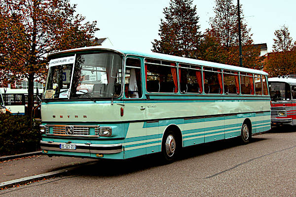 | | Baujahr: | 1976 | | | Hersteller: | Kässbohrer | Typ: | Setra S 140 | Aufbau: | ..wie Hersteller | Motor: | 6 Zylinder Henschel 524 | Leistung/Hubr.: | 230 PS / 11900 ccm | Gewicht: | 9800 kg | Länge: | 11415 mm | Breite: | 2500 mm | Höhe: | 3140 mm | Plätze: | 54 | | Vita: In den 1960er Jahren begann bei Kässbohrer eine neue Ära. 1963 wurde der Setra S 125 auf der IAA in Frankfurt als neuer Stadtbus vorgestellt. Er war der Vorläufer der Baureihe 100 und sorgte mit seiner großen Kapazität von 125 Passagieren für Furore. Vier Jahre später eroberte die darauf aufbauende 100er-Serie den Markt. Bei Kässbohrer läutete die Setra-Baureihe 100 eine neue Ära in der Busproduktion ein. Das Baukastenprinzip der 1959 eingeführten Baureihe 10 hatte bereits den Grundstein gelegt. Die Baureihe 100 perfektionierte dieses Produktionssystem. Bei der Präsentation auf der IAA 1967 reichte die Auswahl vom 8,70 Meter langen S 100 über den S 110, S 120 und S 130 bis hin zum 12 Meter langen S 150. Im Jahr darauf gab es zusätzliche Modelle. Angeboten wurde zusätzlich der S 80 mit acht Sitzreihen und die längere Version des S 130, der S 140 mit 14 Sitzreihen. Neben einem schlanken und modernen Design waren die vielen spektakulären Innovationen bemerkenswert. Zum Start waren die Modelle S 130 und S 150 optional mit Luftfederung erhältlich. Ab 1969 gehörte sie dann zur Serienausstattung. Eine Doppelverglasung der Seitenscheiben mit Antibeschlagsystem verbesserte den Komfort. Auch bei der Sicherheitsausstattung rüstete Setra auf. Während der Bauzeit der Serie 100 wurden insgesamt 12.339 Einheiten der 22 unterschiedlichen Modelle verkauft. Der S 150 war dabei mit 2.479 verkauften Einheiten das meistverkaufte Modell. Der Setra S 140 von Autocars Anciens de France wurde am 13. Mai 1976 von Autocars Faure in Vallon Pont d'Arc im Départment Ardèche im Südosten Frankreichs neu gekauft. 1986 wechselte er erstmals den Besitzer und gehörte nun Transports Seydt de Saint Flour im Départment Cantal. 2004 wurde er von William Faure gekauft. Seit 2013 ist er Teil der Sammlung des Vereins Autocars Anciens de France. Besitzer ist Jean Montanaro, der den fahrbereiten Bus dem Verein zur Nutzung überlassen hat. Bei AAF gibt es einen weiteren Setra, der einst bei Faure zuhause war. Es handelt sich dabei um einen Setra S 130 von 1971.