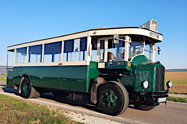 | | | | | Baujahr: | 1926 | | | Hersteller: | Renault | Typ: | TN 4 F | | Aufbau: | ..wie Hersteller | Motor: | Benzin, 4 Zyl. Reihe | | Leistung/Hubr.: | 67 PS / 8000 ccm | Gewicht: | 7700 kg | | Länge: | 9200 mm | Breite: | 2300 mm | | Höhe: | 2800 mm | Plätze: | 20 | | Vita: Dieser Renault TN 4 F von 1926 war mehr als dreißig Jahre lang im Stadtverkehr von Paris im Einsatz. Bereits in den 1950er Jahren gelangte er nach seiner Ausmusterung nach Deutschland. Etwa 1970 ging er in das Eigentum der OVG, dem Omnibusverkehr Göppingen OVG Bliederhäuser GmbH & Co. KG über. Dort wurde er allerdings nur sporadisch für Sonderfahrten wie zu Hochzeiten, Betriebsausflügen usw. eingesetzt. In Göppingen konnte Josef Albrecht den Bus erwerben, der sich bei der Übernahme in einem relativ guten Zustand befand. Lediglich einige Ausbesserungen an der Holzkarosse und die Überholung der Technik wie z.B. der verbauten Seilzugbremse hatte er durchzuführen. Seitdem ergänzt der Kultbus mit den markanten großen Rädern und der offenen hinteren Plattform Albrechts Veteranenfuhrpark.