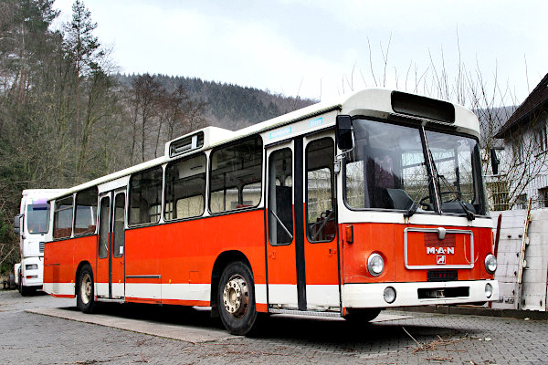 | | | | | Baujahr: | 1980 | | | Hersteller: | MAN | Typ: | SL 200 | | Aufbau: | ..wie Hersteller | Motor: | D 2566 HMU | | Leistung/Hubr.: | 240 PS / 11334 ccm | Gewicht: | kg | | Länge: | 11240 mm | Breite: | 2500 mm | | Höhe: | 3100 mm | Plätze: | 45Sitz,55Steh | | Vita: Der MAN SL 200 wurde zusammen mit 21 weiteren baugleichen Fahrzeugen am 24.06.1980 erstmals auf die MVG zugelassen, erhielt die Wagennummer 264 und das amtliche Kennzeichen MK V 264. Wagen 264 war überwiegend im Nordteil des Märkischen Kreises unterwegs und auf den Betriebshöfen Menden, Iserlohn-Calle und Grüne stationiert. Am 30.05.1994 wurde er mit dem Großteil der 1980er-Lieferserie ausgemustert. Danach verschlug es den Wagen zunächst zu einem Nutzfahrzeughändler in Frankfurt/Oder. Im April 1995 erwarb die Firma Obstland Dürrweitzschen das Fahrzeug, das dort fortan dem Transport von Feldarbeitern während der Erntesaison diente. In den folgenden 22 Jahren wurden mit dem Bus nur etwa 70.000 Kilometer zurückgelegt. Nach längeren Verhandlungen ist es dem Verein Traditionsbus Mark Sauerland im Herbst 2017 gelungen, den letzten übrig gebliebenen Standardomnibus der MVG zu übernehmen und ihn zurück in sein altes Einsatzgebiet zu holen. Dort wird er derzeit restauriert.