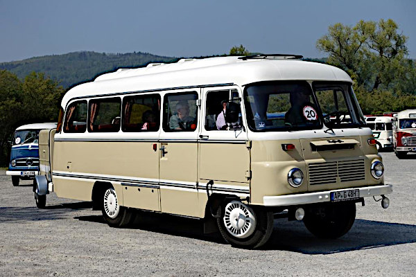 | Robur-Werke (VEB) LO 2501 | Baujahr: | 1972 | | | Hersteller: | Robur-Werke (VEB) | Typ: | LO 2501 | Aufbau: | Karosseriewerk Halle (VEB) | Motor: | Robur LO4/2 | Leistung/Hubr.: | 70 PS / 3345 ccm | Gewicht: | 3600 kg | Länge: | 6800 mm | Breite: | 2370 mm | Höhe: | 2750 mm | Plätze: | 20+1 | | Vita: Dieser Robur LO 2501 gehörte in seinem ersten Leben einer LPG. Mit ihm wurden die Mitarbeiter auf die Felder gefahren. Für den Linienverkehr war der ELLO mit seinen 20 Sitzplätzen viel zu klein. Als Thomas Greyer seinen Bus erwarb, befand er sich in einem heruntergewirtschafteten Zustand. Während der folgenden Jahre restaurierte der gelernte Kfz-Schlosser und heutige Busfahrer der EVAG den Robur komplett, so das der Bus heute besser als im Auslieferungszustand dasteht. Die meisten Ersatzteile hat er sich im Internet besorgt und dann geschraubt. Zum Glück ist er Mitglied im 1. Oldtimerclub Erfurt e. V. und kann in der Vereinshalle ungestört arbeiten. Dort hat er auch seine anderen automobilen Schätzchen untergebracht. Regelmäßig ist Greyer mit dem ELLO auf Oldtimertreffen zu sehen. |