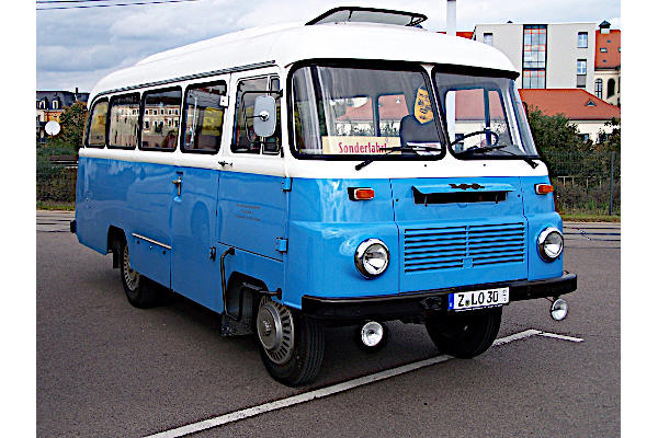 | | Robur-Werke (VEB) LO 3000 | | Baujahr: | 1989 | | | Hersteller: | Robur-Werke (VEB) | Typ: | LO 3000 | | Aufbau: | Karosseriewerk Halle (VEB) | Motor: | Robur LO 4/2 4VO11,8/9,5- | | Leistung/Hubr.: | 75 PS / 3445 ccm | Gewicht: | 3600 kg | | Länge: | 6800 mm | Breite: | 2405 mm | | Höhe: | 2800 mm | Plätze: | 20+1 | | Vita: Robur ist die Bezeichnung für eine LKW- und Omnibus-Baureihe der Zittauer Robur-Werke, die von 1961 bis 1991 hergestellt wurde. Mit einer Nutzlast von 1,8 bis 3 Tonnen war der Robur im Fahrzeugbau der ehemaligen DDR oberhalb des Barkas B 1000 und unterhalb des IFA W 50 angesiedelt. Dieses Exemplar mit der Typenbezeichnung LO 3000 wird von einem luftgekühlten Ottomotor angetrieben, der 75 PS leistet. Es entstand kurz vor der Wiedervereinigung und befindet sich heute im Besitz des Vereins der Freunde des Nahverkehrs Zwickau. Der Verein kümmert sich in der Hauptsache um historische Straßenbahnen, besitzt aber neben diesem LO, der zwanzig Fahrgästen Platz bietet, auch noch einen restaurierten und bestens gepflegten Ikarus 263.01. |