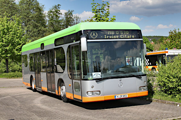 | | Mercedes-Benz Citaro O 530 Irvine | | Baujahr: | 1999 | | | Hersteller: | Mercedes-Benz | Typ: | Citaro O 530 Irvine | | Aufbau: | ..wie Hersteller | Motor: | OM 906 hLA | | Leistung/Hubr.: | 279 PS / 6374 ccm | Gewicht: | kg | | Länge: | 12050 mm | Breite: | 2550 mm | | Höhe: | 3250 mm | Plätze: | | | Vita: Zur Weltausstellung Expo im Jahr 2000 gönnte sich die niedersächsische Landeshauptstadt Hannover eine Sonderedition des 1997 vorgestellten Mercedes-Benz Citaro. Es wurde eigens ein Künstler damit beauftragt, einen Expo-Bus zu entwerfen. James Irvine bekam den Auftrag, ein modernes, aber zugleich zweckmäßiges Design zu schaffen. Dabei hatte Irvine keinerlei Erfahrungen in Sachen Busdesign, sondern sich mit Arbeiten für Unternehmen wie Canon, WMF, Thonet oder Artemide einen Namen gemacht. Insgesamt wurden von der Hannoverschen Verkehrsbetriebe Aktiengesellschaft Üstra 101 Fahrzeuge bei Mercedes-Benz in Auftrag gegeben. Beim Hersteller mussten über 100 Fahrzeuge bestellt werden, damit die Fertigung des Sondermodells überhaupt möglich war. Die 101 Fahrzeuge teilten sich in Diesel- und Erdgasbusse als Solo- und Gelenkmodell auf. Der erste Bus fuhr 1999 im Linienbetrieb. Das letzte Exemplar wurde im Jahr 2016 bei der Üstra ausgemustert.