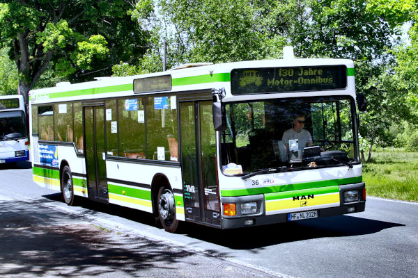 | | | | | Baujahr: | 1993 | | | Hersteller: | MAN | Typ: | NL 202 (A 10) | | Aufbau: | ..wie Hersteller | Motor: | D 0826 LUH 03 | | Leistung/Hubr.: | 214 PS / 6871 ccm | Gewicht: | 10250 kg | | Länge: | 11800 mm | Breite: | 2500 mm | | Höhe: | 2900 mm | Plätze: | 36Sitz, 64Steh | | Vita: Am 19.11.1993 wurde dieser MAN NL 202 (A 10) bei den Verkehrsbetrieben Minden-Ravensberg (VMR) mit dem Kennzeichen HF - BL 27 und der Wagennummer 36 in Dienst gestellt und dem Betriebshof Minden zugeteilt. Drei Jahre später wechselte der Bus zum Betriebshof Herford. Am 31.01.2009 erfolgte die Ausmusterung und der Verkauf an den Subunternehmer Fritz Pieper in Herford. Bis zum November 2018 war er zunächst bis zur Insolvenz der VMR dort im Einsatz und später für die Bahntochter BVO. Fast 25 Jahre nach der Indienststellung ging der Bus in den Privatbesitz von Max Sewing und Janick Manfrass. Nach über einem Jahr harter Arbeit an Technik und Karosserie ist der Bus seit Januar 2020 wieder betriebsbereit und in den Ursprungszustand zurückversetzt. Er steht für Sonderfahrten zur Verfügung. |