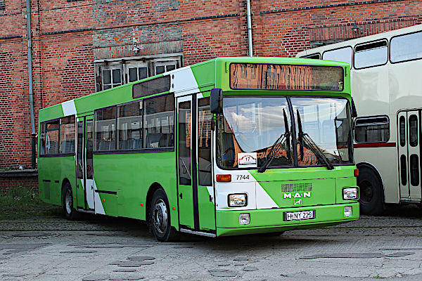 | | Baujahr: | 1986 | | | Hersteller: | MAN | Typ: | SL 202 | Aufbau: | ..wie Hersteller | Motor: | MAN D 2566 MUH | Leistung/Hubr.: | 240 PS / 11334 ccm | Gewicht: | 9300 kg | Länge: | 11300 mm | Breite: | 2500 mm | Höhe: | 3100 mm | Plätze: | 41Steh, 62Steh | | Vita: Die Uestra Hannoversche Verkehrsbetriebe Aktiengesellschaft erhielt im Jahr 1986 drei MAN SL 202, die für Gelegenheits- und Sonderfahrten mehr und gepolsterte Sitzplätze und ein Schaltgetriebe besaßen. Außerdem verfügten die Busse abweichend von der Serie über ein Ersatzrad sowie eine 100 km/h-Zulassung. Einer der drei Sonderlinge ist der Wagen mit der Nummer 7744, der als Museumsbus überlebt hat. Im Jahr 2001 wurde er aus dem aktiven Fahrdienst ausgemustert und zunächst abgestellt. Beim Üstra-Partner Hartmann Busbetrieb GmbH erhielt er schließlich von September bis Oktober 2015 nach erfolgter Aufarbeitung eine neue Hauptuntersuchung und steht seitdem als Museumsbus für besondere Einsätze zur Verfügung. |