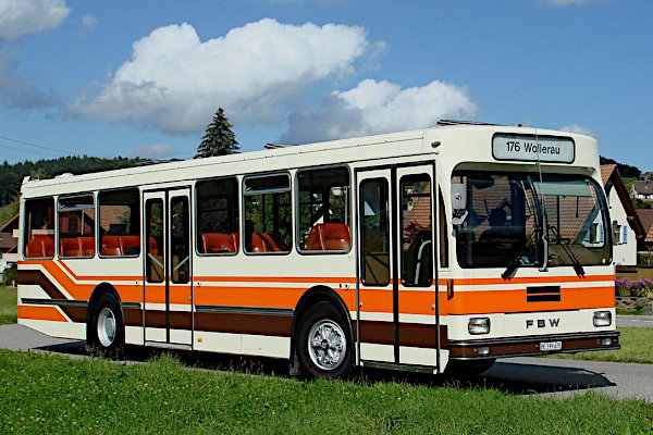 | | | | | Baujahr: | 1978 | | | Hersteller: | FBW | Typ: | 55UH | | Aufbau: | Ramseier & Jenzer | Motor: | FBW EU3A | | Leistung/Hubr.: | 240 PS / 11528 ccm | Gewicht: | 17000 zul. kg | | Länge: | mm | Breite: | mm | | Höhe: | mm | Plätze: | | | Vita: Auf das Fahrgestell eines FBW 55UH setzte der Karosseriebauer Ramsauer & Jenzer im Jahr 1978 diesen Linienwagen-Aufbau. Ramseier & Jenzer, vormals Ramseier, Streun & Co. Carosserie-Werke Bern, war ein schweizer Karosseriebauunternehmen, das von 1919 bis 1996 existierte. Es war zeitweise das wichtigste Unternehmen dieser Art in der Schweiz. Der FBW 55UH wurde geliefert an die Bamert Busbetriebe GmbH in Wollerau und dort viele Jahre lang im Linienverkehr eingesetzt. Am 8. November 2014 war sein letzter Betriebstag bei Bamert. Roman Wegmüller konnte den Bus übernehmen und in seine umfangreiche Sammlung historischer Busse aus den 1970er und 1980er Jahren aufnehmen. Regelmäßig wird der FBW 55UH heute bei einschlägigen Veranstaltungen gezeigt und für Ausfahrten mit Bus-Enthusiasten genutzt.
