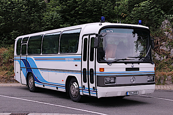 | | | | | Baujahr: | 1995 | | | Hersteller: | Mercedes-Benz | Typ: | O 303 9R | | Aufbau: | ..wie Hersteller | Motor: | Mercedes-Benz OM 441 | | Leistung/Hubr.: | 224 PS / 11309 ccm | Gewicht: | 12000 zul. kg | | Länge: | 8680 mm | Breite: | 2500 mm | | Höhe: | 3300 mm | Plätze: | 30+1+1 | | Vita: Seit dem Jahr 2007 ist dieser am 3. Mai 1995 erstzugelassene Mercedes-Benz O 303 beim THW Ortsverband Gunzenhausen stationiert. Der kurze O 303 mit nominell 9 Sitzreihen ist tatsächlich mit 31 Sitzplätzen ausgestattet. Bevor er nach Gunzenhausen kam, war er bei der Bundesschule des THW in Neuhausen auf den Fildern im Landkreis Esslingen in Baden-Württemberg im Einsatz. An seinem aktuellen Standort wird der Bus, der das Kennzeichen THW - 8935 trägt und auf den Funkrufnamen 86/79 hört, hauptsächlich für Ausflüge der Jugendgruppe bzw. für Helferausflüge verwendet, aber auch andere Ortsverbände nutzen den Reisebus mit ihrer Jugendgruppe oder für Ausflüge mit den Helfervereinigungen. Bei Landes- und Bundesjugendlagern wird er auch im Rahmen des Freizeitprogrammes ebenfalls verwendet. |