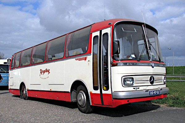 | | | | | Baujahr: | 1973 | | | Hersteller: | Mercedes-Benz | Typ: | O 302 10 R | | Aufbau: | Domburg | Motor: | Mercedes-Benz OM 352 | | Leistung/Hubr.: | 126 PS / 5675 ccm | Gewicht: | kg | | Länge: | mm | Breite: | 2500 mm | | Höhe: | mm | Plätze: | 42 | | Vita: 1965 stellte Mercedes-Benz den Typ O 302 als Nachfolger des bekannten O 321 H vor. Der Bus konnte optional als Komplettbus geliefert werden, aber auch als Fahrgestell zum Aufbau durch Karosseriebauer. Ein solcher "Fremdaufbau" ist dieser O 302 10 R, der 1973 mit der Wagenparknummer 14 an das Busunternehmen W. Verhoef in Driebruggen geliefert wurde. Wie viele Verhoef-Busse hatte auch dieser eine Karosserie der Firma Domburg aus Montfoort. Damit der Bus auch gelegentlich im Linienverkehr eingesetzt werden konnte, war er mit einer luftbetätigten Tür ausgestattet. Verhoef verkaufte den Bus an GZ Touring in Den Haag. Über die Besitzer Touringcarbedrijf Leo Ringelberg in Rhoon und Touringcarbedrijf J.L. Ringelberg in Ridderkerk gelangte er im Jahr 2003 zur Stichting Veteraan Autobussen.