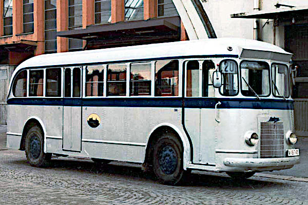 | | | | | Baujahr: | 1939 | | | Hersteller: | Strømmen | Typ: | B 7 | | Aufbau: | ..wie Hersteller | Motor: | Hall-Scott 130 | | Leistung/Hubr.: | 117 PS / ccm | Gewicht: | 5580 kg | | Länge: | 9300 mm | Breite: | 2300 mm | | Höhe: | mm | Plätze: | 26Sitz, 29Steh | | Vita: Strømmens Værksted begann 1929 im Auftrag von Oslo Sporveier mit der Produktion von Leichtbaubussen aus Aluminium, wobei das Chassis integraler Bestandteil der Karosserie war. Die Busse waren ihrer Zeit in jeder Hinsicht weit voraus. Auf einen Prototypen folgte 1936/37 eine Serienproduktion von 30 Bussen des Typs B 6. In den Jahren 1938/39 wurden weitere 40 Busse des Typs B 7 ausgeliefert. Der heutige Museumsbus ist einer der letzten, die 1939 ausgeliefert wurden. Die benzinbetriebenen, auch "Turbinenbus" oder "Nilpferd" genannten Busse hatten eine ungewöhnlich lange Lebensdauer. Die letzten Exemplare wurden erst 1959 außer Dienst gestellt. Dieses Exemplar wurde von Oslo Sporveier erhalten. 1989 wurde der Bus offiziell vom Straßenbahnmuseum übernommen, repariert und neu zugelassen.