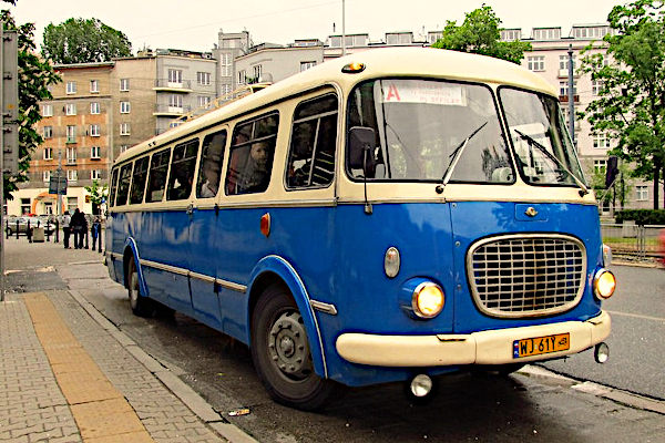 | | | | | Baujahr: | 1974 | | | Hersteller: | Jelcz | Typ: | 043 | | Aufbau: | ..wie Hersteller | Motor: | Skoda 706RT | | Leistung/Hubr.: | 145 PS / 11781 ccm | Gewicht: | 8800 kg | | Länge: | 10520 mm | Breite: | 2500 mm | | Höhe: | 2900 mm | Plätze: | 52+1 | | Vita: Dieser Jelcz 043 wurde am 31. Dezember 1974 mit der Nummer 8058 in den Bestand der Städtischen Verkehrsbetriebe Warschaus aufgenommen. Unter den übrigen weiß-blauen Jelcz-Bussen zeichnete er sich als einziger durch die Lackierung mit kirschroten Streifen aus. Rund zwanzig Jahre lang stand er bei den MZK und später bei den MZA im Dienst. In den 1980er Jahren entging er der Verschrottung, als modernere Jelcz PR110IL beschafft wurden. 1996 wurde er schließlich ausgemustert. Im Januar 1999 ging er in den Bestand des KMKM über. 2004 konnte er restauriert werden, um dann zunächst in einem Film eingesetzt zu werden. Seit dem 18.06.2005 ist der Bus regelmäßig auf verschiedenen Sonderlinien und Veranstaltungen im Zusammenhang mit dem öffentlichen Verkehr in Warschau und in Polen zu sehen. |