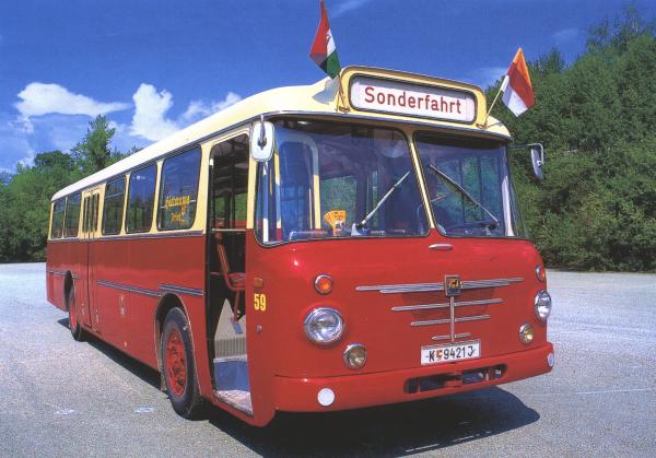 | | Baujahr: | 1965 | | | Hersteller: | Büssing | Typ: | Senator 12 R | Aufbau: | ..wie Hersteller | Motor: | Büssing U 7 D | Leistung/Hubr.: | 150 PS / 7150 ccm | Gewicht: | 7200 kg | Länge: | 10760 mm | Breite: | 2500 mm | Höhe: | 3000 mm | Plätze: | 35 / 42 | | Vita: Ab 1962 wurde die Klagenfurter Straßenbahn stillgelegt. Als Ersatz beschaffte die Stadt Klagenfurt Büssing-Solobusse des Typs "Senator". Der bei den Nostalgiebahnen in Kärnten erhalten gebliebene Bus 59 wurde im Frühjahr 1963 mit dem Kennzeichen K 3.784 in Betrieb genommen. Ab Ende 1974 fuhr er mit der Betriebsnummer 65. 1982 wurde er abgemeldet und gemeinsam mit einem weiteren Bus an den Flughafen Klagenfurt verkauft. 1992 wurde er außer Dienst gestellt und dem Verein Nostalgiebahnen in Kärnten geschenkt. Bei der Überstellung nach Ferlach erlitt der Motor einen Totalschaden. Ab 1996 wurde der Bus in Zusammenarbeit mit den Stadtwerken Klagenfurt einer Generalreparatur unterzogen. Seit August 1997 steht er der Allgemeinheit wieder für Ausflüge zur Verfügung.