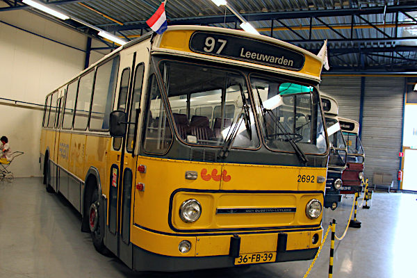 | | Baujahr: | 1978 | | | Hersteller: | Leyland | Typ: | LOB | Aufbau: | Den Oudsten | Motor: | 6 Zyl.-Leyland Unterflur | Leistung/Hubr.: | 165 PS / 11100 ccm | Gewicht: | kg | Länge: | 11900 mm | Breite: | 2500 mm | Höhe: | 3300 mm | Plätze: | 43Sitz, 35Steh | | Vita: Der Karosseriebauer Verheul schuf in den 1970er Jahren einen Bustyp, der als Urform des modernen standardisierten Regionalbusses betrachtet werden kann und der über viele Jahrzehnte das Bild des niederländischen Regionalverkehrs prägte. Die NV Friese Autobus Maatschappij (FRAM) war eines der vielen Unternehmen, in denen der Standardbus Einzug hielt. Wie viele andere Regionalverkehrsunternehmen war die FRAM eine Tochtergesellschaft der niederländischen Eisenbahnen. Dort war die Marke Leyland sehr beliebt. Dieser Bus mit der Nummer 2692 und einer Karosserie von Den Oudsten wurde 1978 in Betrieb genommen. Bis 1993 wurde er in Friesland eingesetzt. Anlässlich des fünfzehnjährigen Bestehens des damaligen Busmuseums in Winschoten wurde er am 26. Juni 1993 feierlich an das NBM übergeben. |