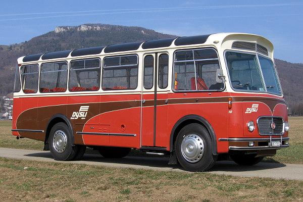 | | Baujahr: | 1963 | | | Hersteller: | FBW | Typ: | PC35U | Aufbau: | Frech-Hoch | Motor: | CUA | Leistung/Hubr.: | 150 PS / 6990 ccm | Gewicht: | 10000 kg | Länge: | 7950 mm | Breite: | 2300 mm | Höhe: | 2840 mm | Plätze: | 28+1 | | Vita: 1961 gab die PTT bei FBW einen kleinen Bruder des bewährten von 1955 bis 1962 gebauten FBW C40U Alpenwagen III-U in Auftrag. Die Serie des PC35U genannten Fahrzeugs umfasste 20 Busse, die von 1962 bis 1965 in Betrieb genommen wurden. Für die Karosserien waren die Firmen Gangloff, Frech-Hoch und Hess verantwortlich. Die Wagen wurden in den Gebirgs-Kursgruppen eingesetzt und erhielten den Kosenamen Haflinger. 1975 wurden die ersten Fahrzeuge ausrangiert. 1989 erwarb die Kurt Dysli AG aus Bern den Wagen mit dem Kennzeichen P 23211. Einige Zeit diente der Wagen für den täglichen Kurs Aumatt - Hinterkappelen, später als Reserve-Fahrzeug für die Bus-Linien 26, 27, 30 und 31. 2010 wurde die Karosserie restauriert und neu lackiert. Seitdem wird der kleine FBW als Museumsbus eingesetzt.